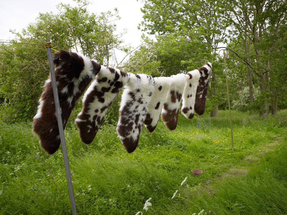 Wir sammeln die Felle ein und führen die Vorbehandlung sowie eine erste Reinigung der Felle sofort durch und lagern sie, bis wir eine große Menge zusammen haben. Dann werden sie von uns selber in einer spezialisierten Gerberei in einem speziellen ökologischen Naturgerbverfahren nach unserem besonderen Rezept mit Pflanzen zum schadstofffreien Naturfell weiterverarbeitet.