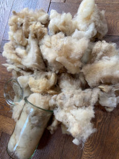 Man erhält nach getaner Arbeit Heilwolle und die besondere Naturfettwolle... Anleitung liegt bei!
